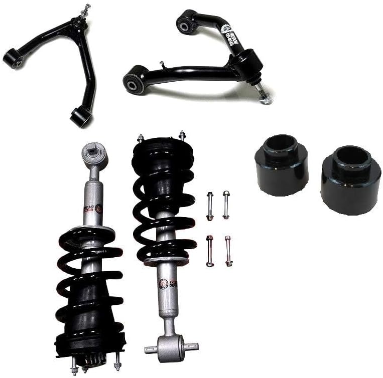 The front lift struts, fully assembled with new strut, spring, and top mount, are designed to improve your vehicle's performance. The carbon steel tapered rear lift blocks, including longer U-bolts, are a reliable upgrade for your worn or corroded existing hardware. Tubular front upper control arms feature robust 1.5 inch DOM tubing, provisions for brake/ABS lines, and heavy-duty OEM-style ball joints with adjusted angles for lifted vehicles.