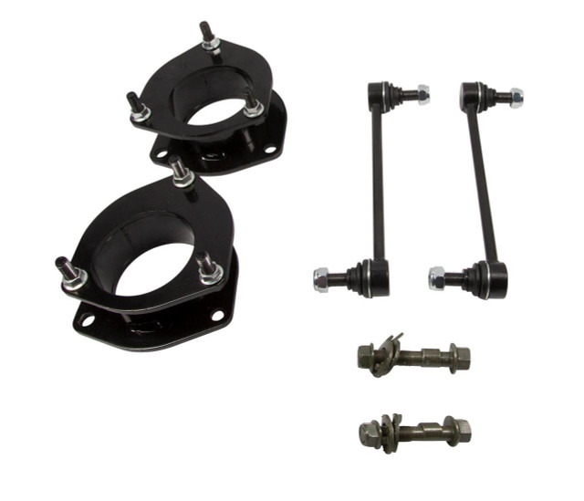 Give your suspension a reliable boost with this 2.5 inch front lift kit, complete with heavy-duty spacers, extended end links, and a camber correction kit. Designed for strength and easy installation, this kit provides a solid height increase while maintaining proper geometry and stable handling.