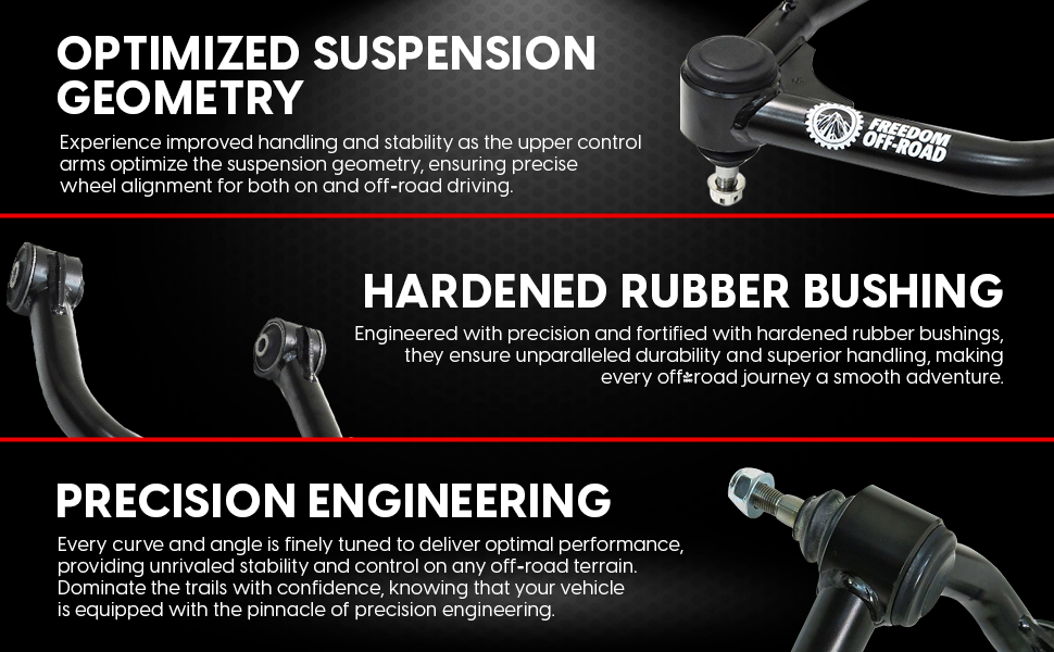 When you order Freedom Off-Road parts, you will have peace of mind knowing you are using high-quality, affordable suspension parts that you can trust and rely on.