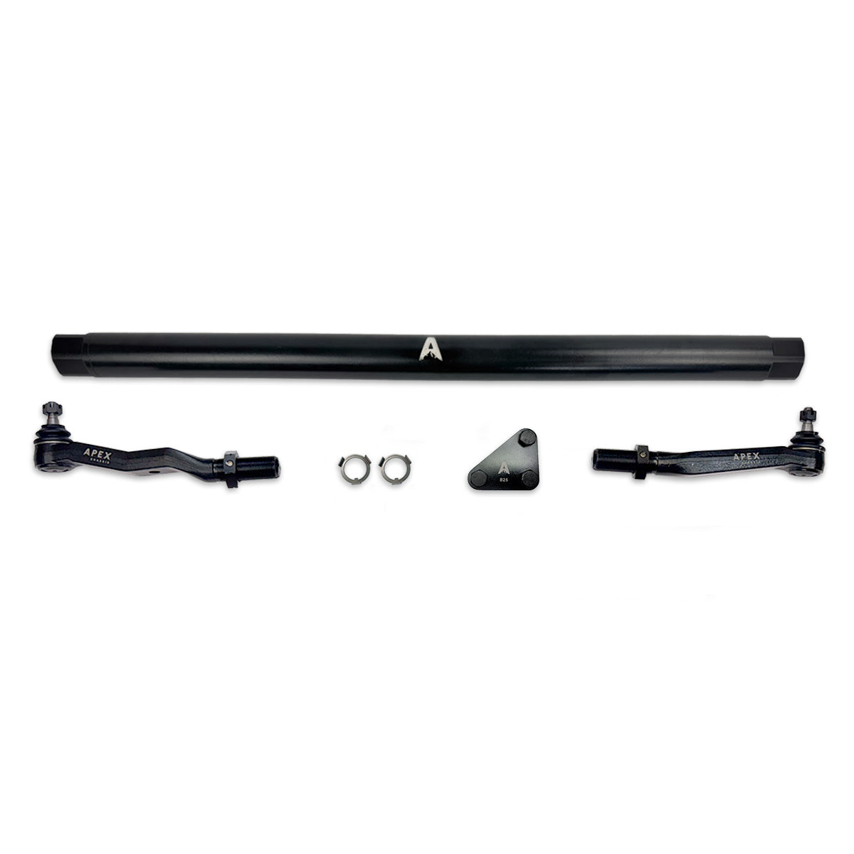 - ProLock Link Connect System (TM): Exclusively from APEX - This patent pending system utilizes a precision keyway cut into the threads of our tie rod and drag link ends, and a pre-bent keyway washer that locks onto the wrench flats of the connecting rod to completely stop any tie rod rotation once the jam nut is set. The jam nut, once torqued to spec, is then locked in place with 3 set-screws inset into the jam nut.