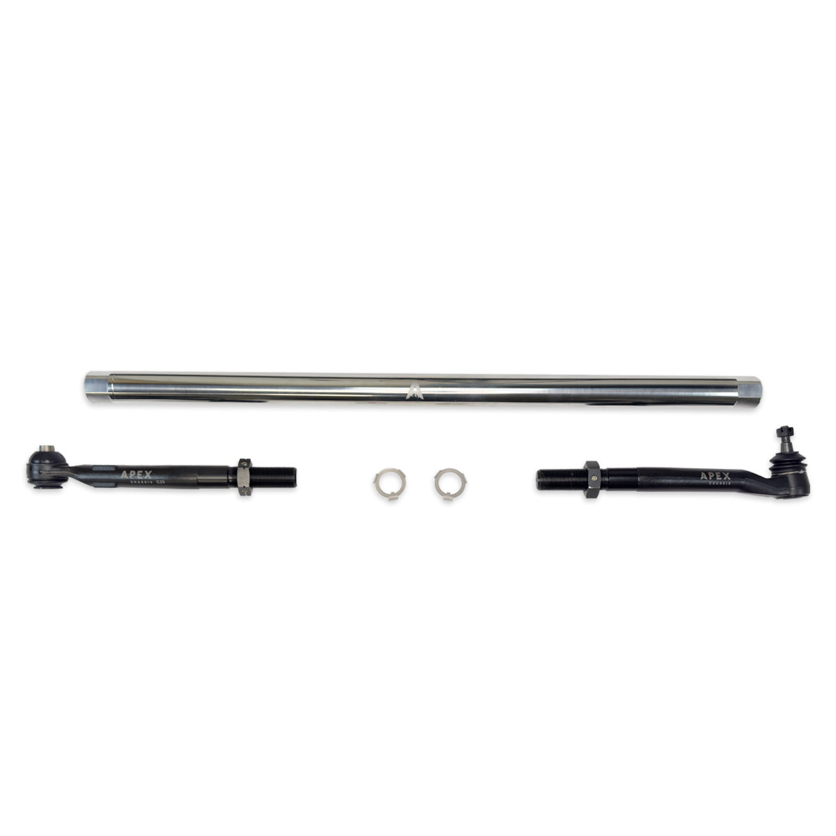 - ProLock Link Connect System (TM): Exclusively from APEX - This patent pending system utilizes a precision keyway cut into the threads of our tie rod and drag link ends, and a pre-bent keyway washer that locks onto the wrench flats of the connecting rod to completely stop any tie rod rotation once the jam nut is set. The jam nut, once torqued to spec, is then locked in place with 3 set-screws inset into the jam nut.