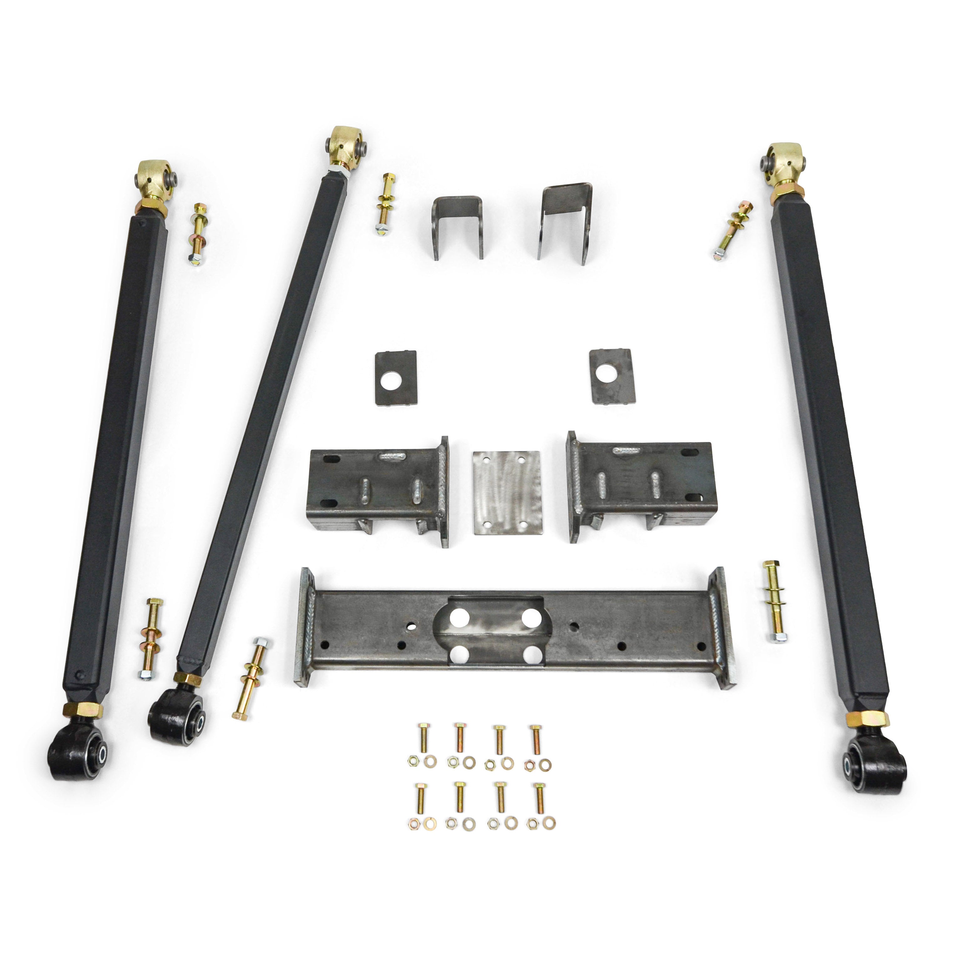 - Weld-on brackets for a secure 3-link upper arm mount.
