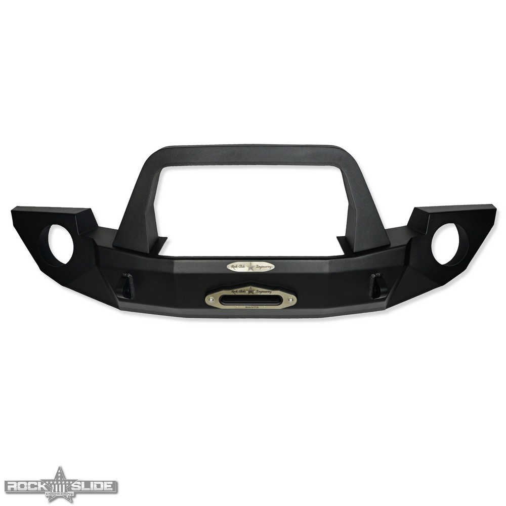 Jeep JK Full Front Bumper For 07-18 Wrangler JK With Winch Plate Bull Bar Black Powdercoated Rigid Series Rock Slide Engineering